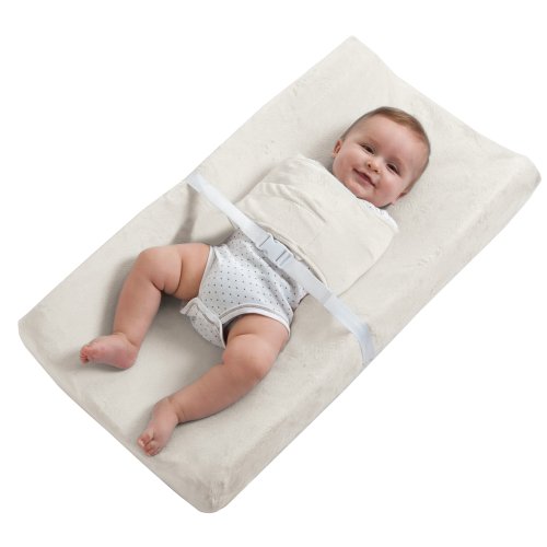 - Swaddles and soothes newborns for cry-free diaper changes; Wrap is permanently attached to changing pad cover and adjusts to size of baby; For older babies, keeps them on their backs and with hands out of reach of diaper area