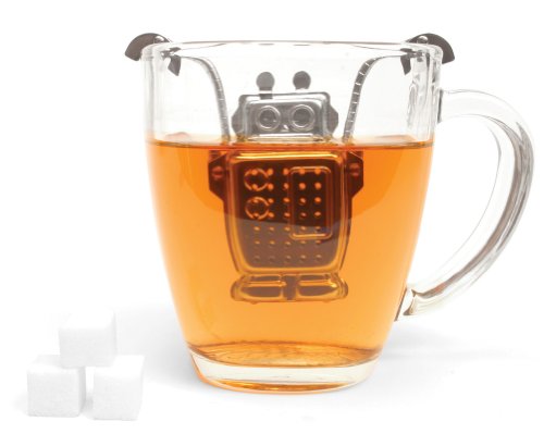 Use this charming robot stainless steel tea infuser to prepare your favorite loose tea. His arms and hands move to create a custom fit to your favorite tea mug. Rest him on the included drip tray when your tea is steeped. Use his antennaes to open and close.