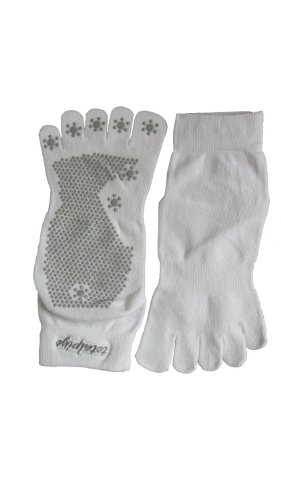 Silicone Dots Non-slip Traction Grip Yoga Toe Socks (White)
